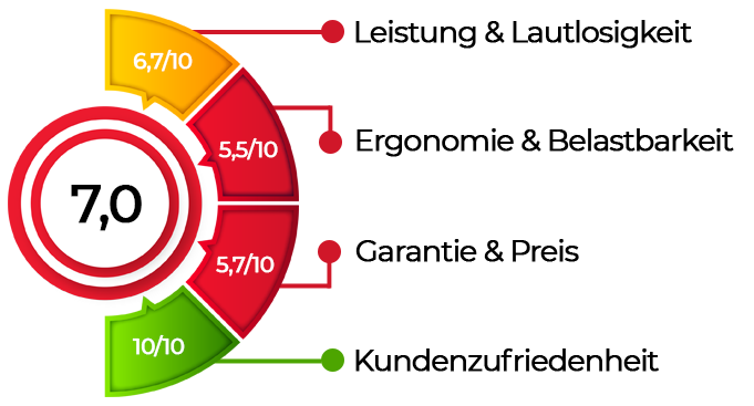 Der Titan ist der mit Abstand stabilste Tisch im Test. Wer einen Schreibtisch sucht, der auch unter maximaler Belastung souverän bleibt und gleichzeitig leise arbeitet, findet hier die Referenzklasse. Die lange Garantie unterstreicht den Anspruch auf dauerhafte Nutzung.